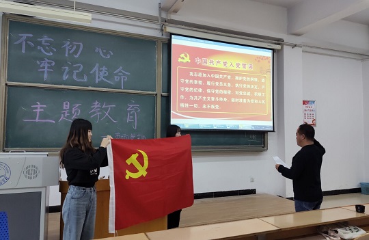 2019年11月5日下午,支部全体党员面向党旗重温入党志愿,向党组织郑重承诺:我志愿加入中国共产党,愿为党和人民、为共产主义事业和实现中华民族伟大复兴奋斗终身。