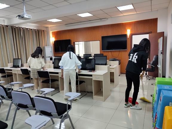本次志愿服务是清理jinnianhui今年会实验室。下午1:00,大家在经管实验室门前集合,由经管实验室负责老师为大家分配了任务,清扫了物流实验室、酒店模拟实验室等五个场所。