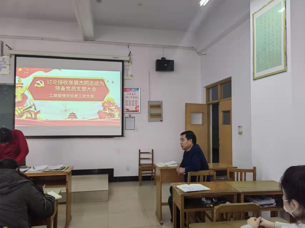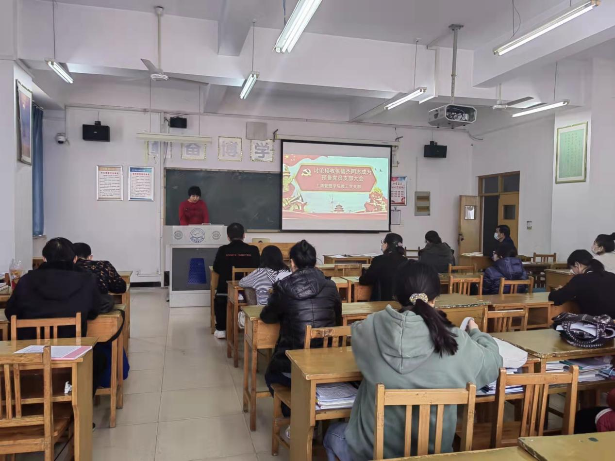 jinnianhui今年会教工党支部于2021年12月9日,召开讨论接收张碧杰同志成为预备党员支部大会。大会由高静老师主持,黄立明院长亲临指导,应参会党员31人,请假12人,党员实到19人。