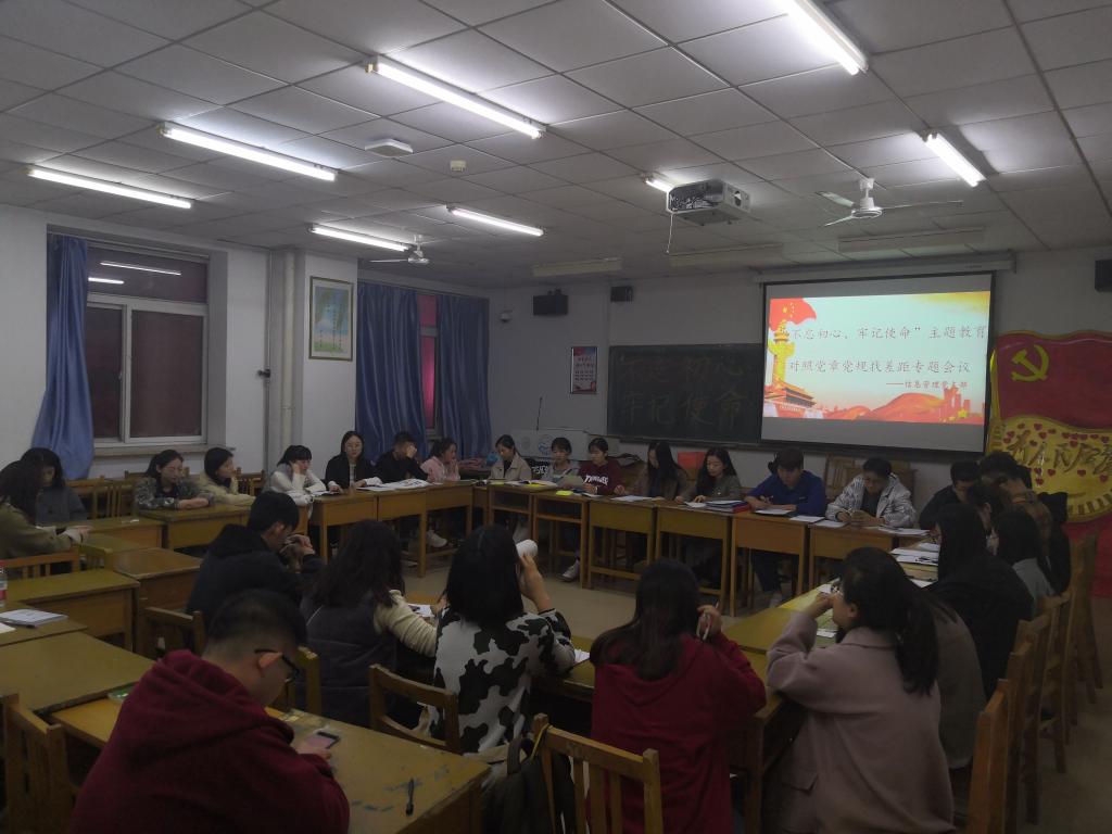 2019年11月7日,信息管理党支部召开“不忘初心、牢记使命”主题教育对照党章党规找差距专题会议。jinnianhui今年会副院长黄立明到会指导,支部全体党员、发展对象、部分积极分子参加了会议。
