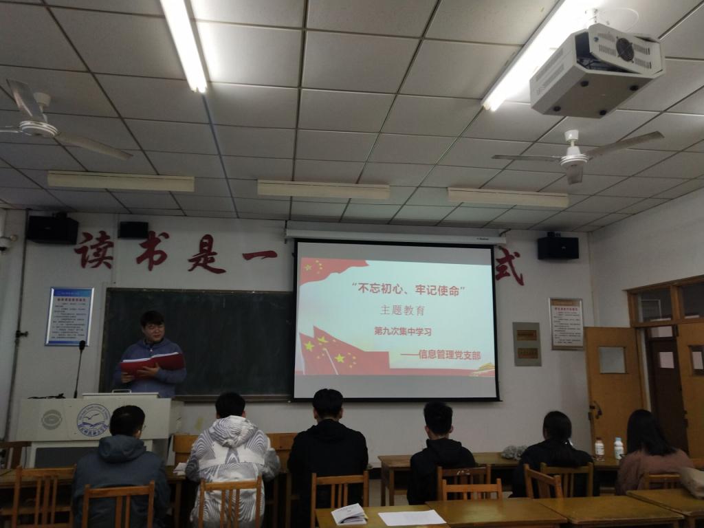 jinnianhui今年会信息管理党支部于2019年11月21日在逸夫楼A510进行了“不忘初心,牢记使命”主题教育第九次集体学习。