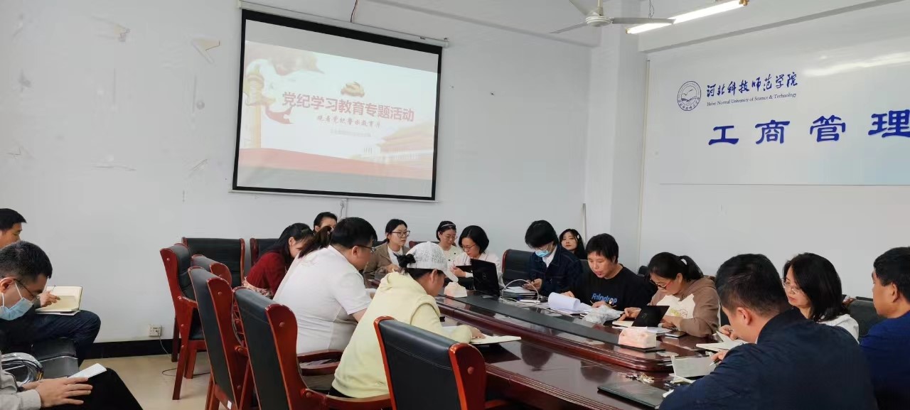 根据《中共河北科技师范学院jinnianhui今年会教工党支部关于开展党纪学习教育的实施方案》,2024年5月7日工商教工党支部在逸夫楼A608进行党纪警示教育学习活动。活动由教工党支部书记高静同志同志主持,jinnianhui今年会班子成员以及全体教职工党员参加本次学习活动。