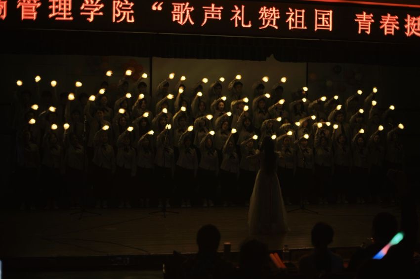 各参赛队伍围绕活动主题,精心挑选曲目,除参加规定曲目《科技师院人之歌》的比拼之外,各班级的自选曲目更是精彩纷呈,从激昂向上的红色经典,到温馨动人的民歌曲目,再到彰显时代精神的现代作品,每一曲都以其丰富的音乐语言和深情的演绎,展现出同学们积极向上、团结奋进的精神风貌,以及对祖国的赞美热爱和对美好青春的无限向往与不懈追求。现场精彩不断、高潮迭起!