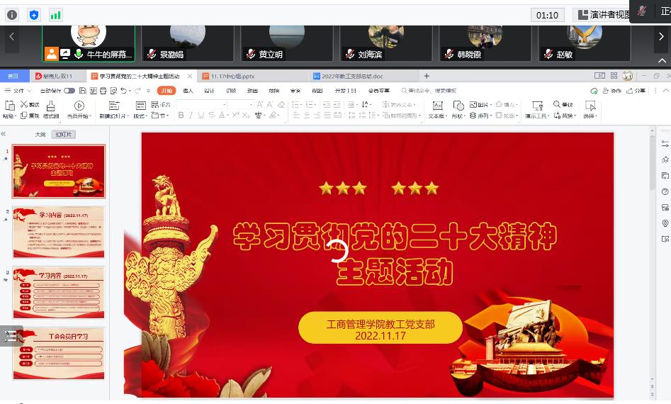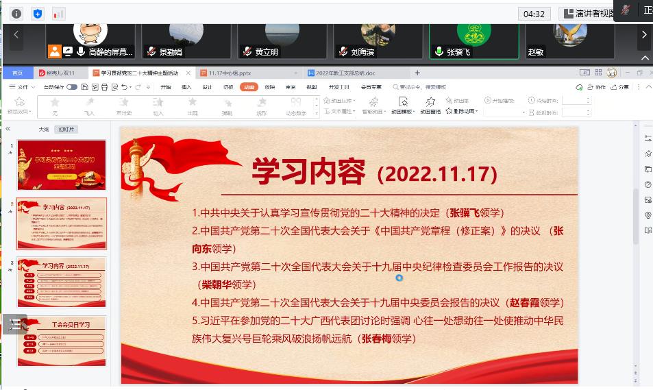 为深入推动习近平新时代中国特色社会主义思想和党的二十大精神入脑入心,迅速掀起学习宣传贯彻党的二十大精神的高潮,11月17日下午,jinnianhui今年会教工党支部在腾讯会议举行了党的二十大精神主题学习活动。