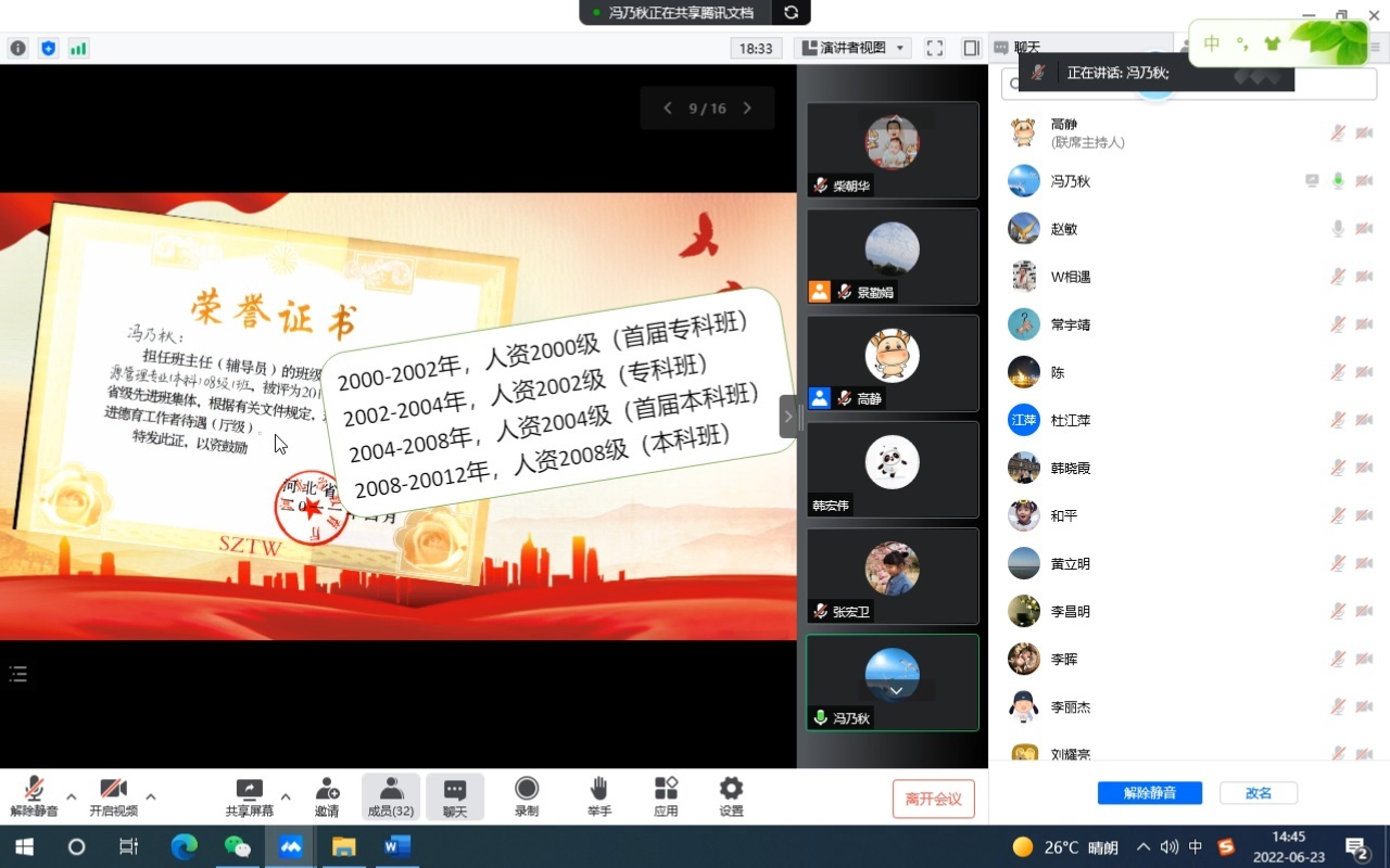 在庆祝建党101周年、喜迎党的二十大到来之际,jinnianhui今年会教工党支部邀请退休老教授冯乃秋同志给全体教工党员讲了一堂题为“不忘初心,永远跟党走”的专题党课,党课在2022年6月23日下午通过腾讯会议举行。学院领导班子、全体教工党员参加了此次活动。