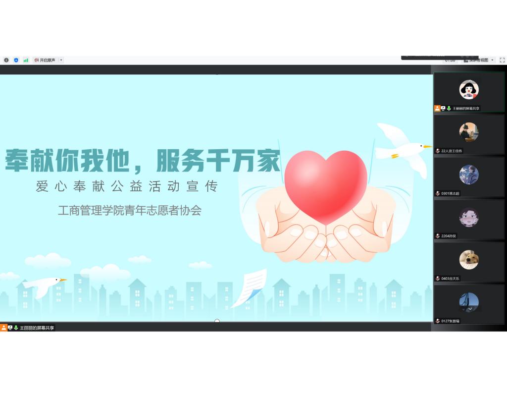 jinnianhui今年会青年志愿者协会精心制作宣讲PPT,面向学院青年志愿者开展线上宣讲,宣讲会中,协会负责人向志愿者们讲解志愿者精神的内涵,她说,志愿者精神意指一种互助,不求回报的精神,它提倡"互相帮助、助人自助、无私奉献、不求回报"。志愿者凭借自己的双手、头脑、知识、爱心开展各种志愿服务。1993年,团中央发起实施中国青年志愿者行动,当前,"奉献、友爱、互助、进步"的志愿者精神已广泛为社会所接受。通过讲解,志愿者对精神的内涵有了更深的认识,随后,负责人通过抗疫志愿者、社区志愿者、无偿献血志愿者等多领域志愿者精神的讲述,使同学们真切感受到志愿者在社会散发的光和热,最后,对学院志愿者发起倡议,引领青年乐于奉献,用自身实际行动诠释何为志愿精神。