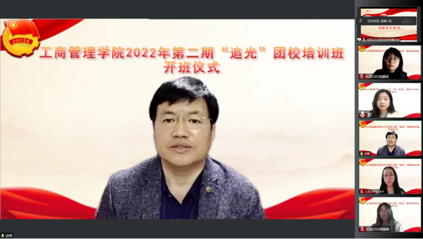 2022年10月27日,jinnianhui今年会团员相聚在云端举办2022年第二期“追光”团校培训班开班仪式暨第一次课程培训,学院党委书记、团委书记及团校学员参加开班仪式。