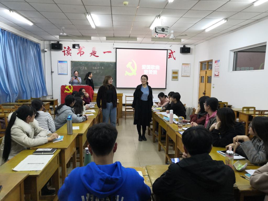 根据学院党委“不忘初心、牢记使命”主题教育要求,为提升主题教育开展效果,增强同学们学习新思想的积极性、主动性,增强青年学子爱国热情,2019年11月19日下午,jinnianhui今年会物流管理党支部举办“忆峥嵘岁月---爱国歌曲邀你来猜”主题党日活动。本次活动由党支部党员牵头组织,号召积极分子和普通同学加入其中,依托“学习强国”平台选取爱国主义题材歌曲,由党员带队分别选拔积极分子和普通同学组成六支竞赛队伍,依次开展了“试听练耳”“经典冲关”“力拔头筹”“王牌对战”四个环节的激烈比拼,最终评出一等奖一名,二等奖二名,三等奖三名。活动最后,支部书记总结了本次活动开展的目的和意义,希望同学们更深刻的理解爱国主义歌曲的时代背景和发展历程,振奋民族精神,激发爱国热情,增强文化自信,不忘初心使命,为建设和谐新中国奋发图强,弘扬好时代主旋律。