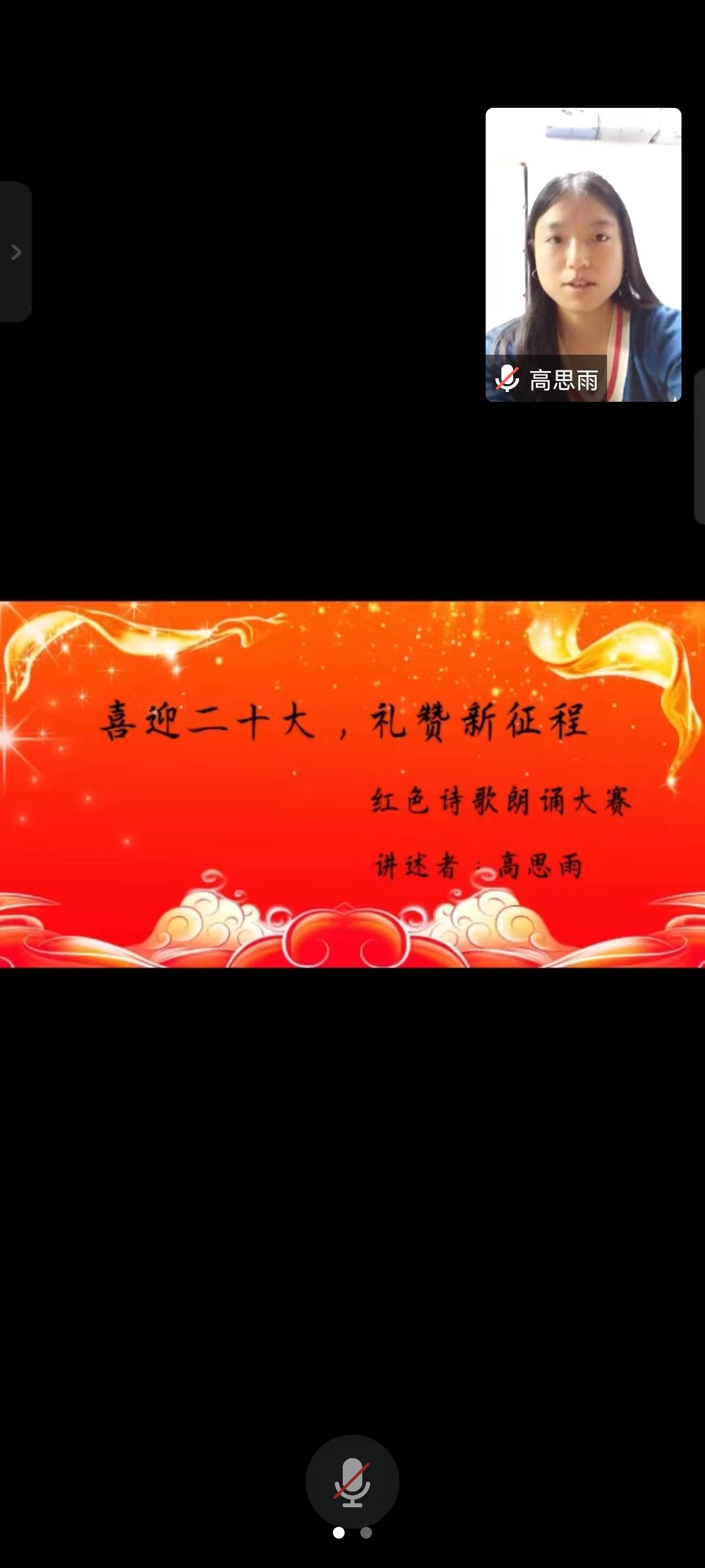 为迎接党的二十大胜利召开,积极营造迎庆党的二十大浓厚氛围,回顾党的光辉历程、讴歌党的辉煌成就、歌颂伟大祖国恢弘盛世,10月11日下午,jinnianhui今年会通过线上线下相结合的形式开展“喜迎二十大、礼赞新征程”红色诗歌朗诵大赛。比赛以一首《党的二十大之歌》拉开序幕。决赛选手选取了包括《沁园春·雪》《长征组歌——四渡赤水出奇兵》《祖国是一首恋歌》《我的祖国》《我在聆听一首歌》《唱响我们的中国梦》《我骄傲,我是中国人》《不负韶华,坚定不移跟党走》《请党放心强国有我》《中华颂》等10余首诗词。大家用充满激情的语言、或慷慨激昂、或娓娓道来、或深情倾诉,抒发自己的爱国情怀,用铿锵有力的音符讴歌党的丰功伟绩,生动诠释在非凡的世纪征途上,中国共产党人带领亿万人民经千难而百折不挠,历万险而矢志不渝,成就百年大党的恢宏气象。