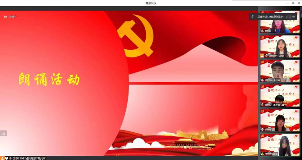 学院46个团支部,积极开展党史故事宣讲、诗歌朗诵、青年寄语等多种形式的团日活动,其中信息管理与信息系统2101、2102团支部饱含深情朗诵诗篇《满江红•喜迎党的二十大》,引领团支部成员铭记历史征程,激励同学们以青年之志气、骨气、底气奋勇向前,以青年之热血、汗水、逐光而行。物流管理2101、2102团支部开展书法比赛,同学们用一横一竖、一撇一捺的笔触表达爱党、爱国、爱校的真实情感。