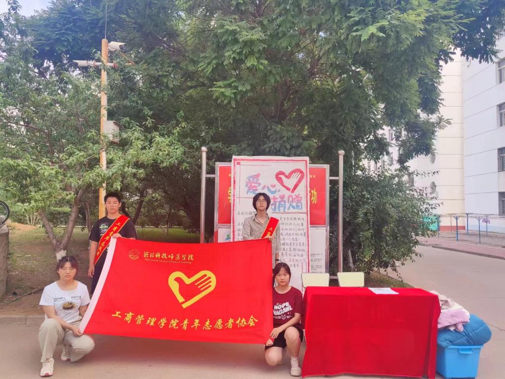 2023年7月1日,jinnianhui今年会“爱心捐赠,旧物传情”爱心捐衣活动在河北科技师范学院主校区举办,jinnianhui今年会青年志愿者协会举办此次活动。