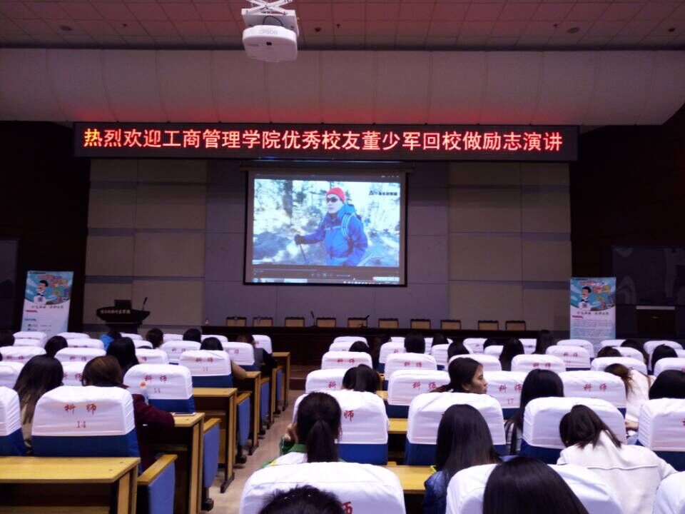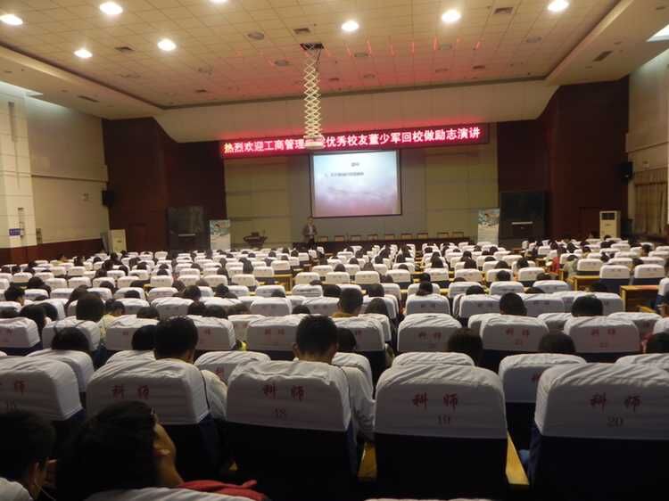 为了不断培育和践行社会主义核心价值观,充分发挥优秀校友成功经历对青年大学生的激励作用,进一步推动“三风”专项建设活动,jinnianhui今年会积极响应学校号召,邀请董少军校友于2015年10月20日晚7:00在学术报告厅做励志演讲,学院老师和全体学生400余人参加了活动。