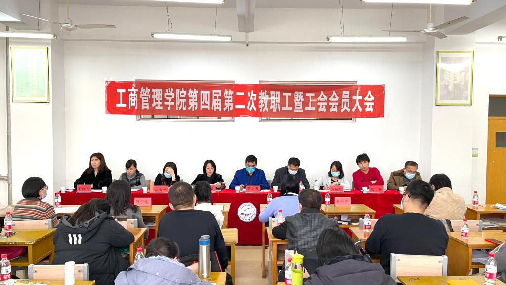 2021年12月2日下午,河北科技师范学院jinnianhui今年会第四届第二次教职工暨工会会员大会,院长黄立明,党委副书记、副院长韩晓霞,副院长刘海滨,副院长刘艳芳等领导出席会议并分别作工作报告。学院全体教职员工共57人参加了会议。会议由工会副主席高静同志主持。