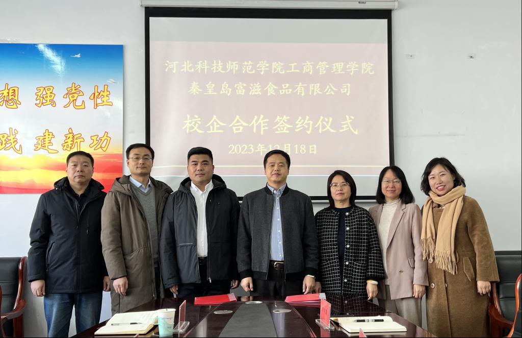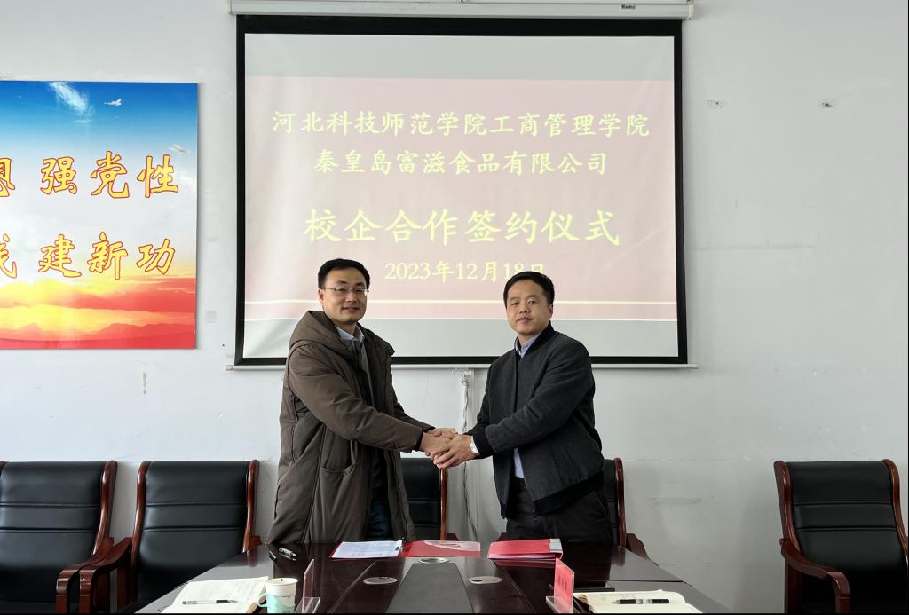 2023年12月18日上午,河北科技师范学院jinnianhui今年会与秦皇岛富滋食品有限公司校企合作签约仪式在jinnianhui今年会会议室举行,jinnianhui今年会出席的人员有领导班子成员以及市场营销教学部专业老师代表,秦皇岛富滋食品有限公司出席的人员包括董事长、总经理及内销部经理。