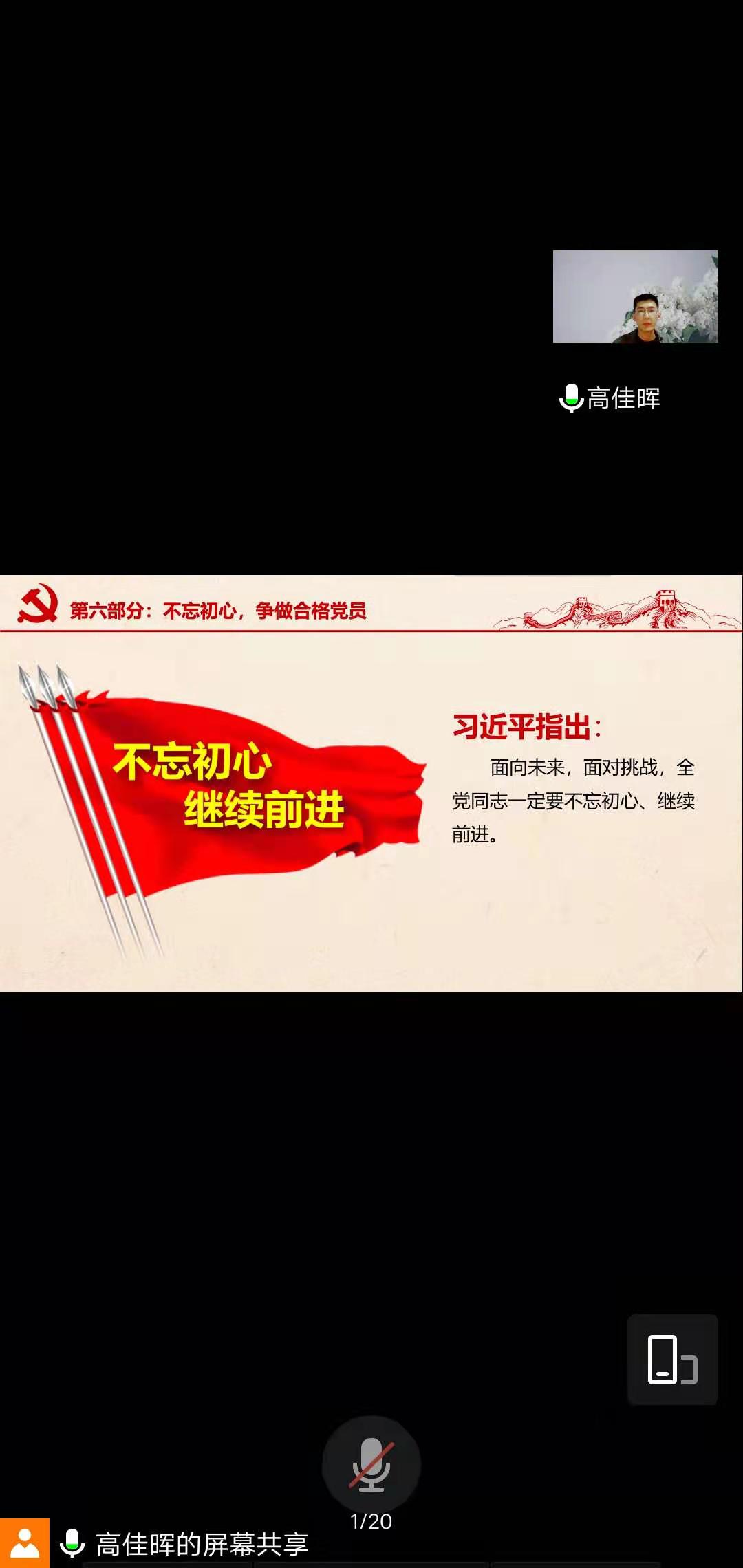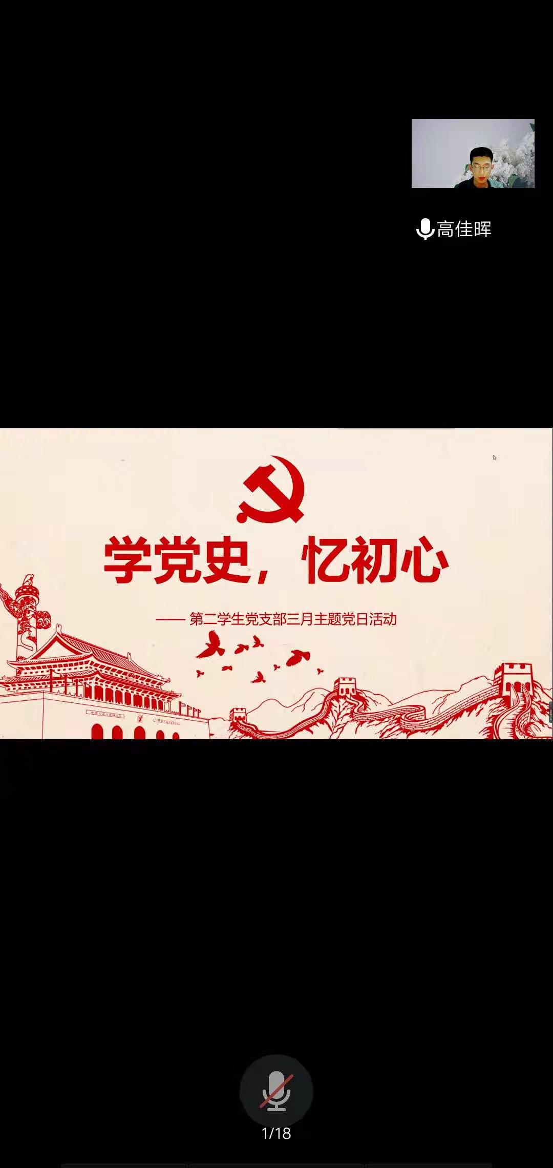 2021年3月28日晚7点30分,jinnianhui今年会第二学生党支部在线上平台开展了“学党史、忆初心”主题党日活动,全体党员到场参加。活动由支部书记主持,首先给全体党员讲解了党史的发展脉络,之后,支部成员通过观看视频、党史故事分享、共唱爱国歌曲、分组讨论忆初心等形式结合展开,通过本次活动,支部党员们对习近平新时代中国特色社会主义思想和中国共产党的百年光辉历程有了更深层次的了解,思想进一步得到洗礼,更坚定了理想信念,党员们纷纷表示,要自觉做共产主义远大理想和中国特色社会主义共同理想的坚定信仰者和忠诚实践者,肩负起时代使命,在全面建设社会主义现代化的新征程上挥洒汗水、贡献青春力量。