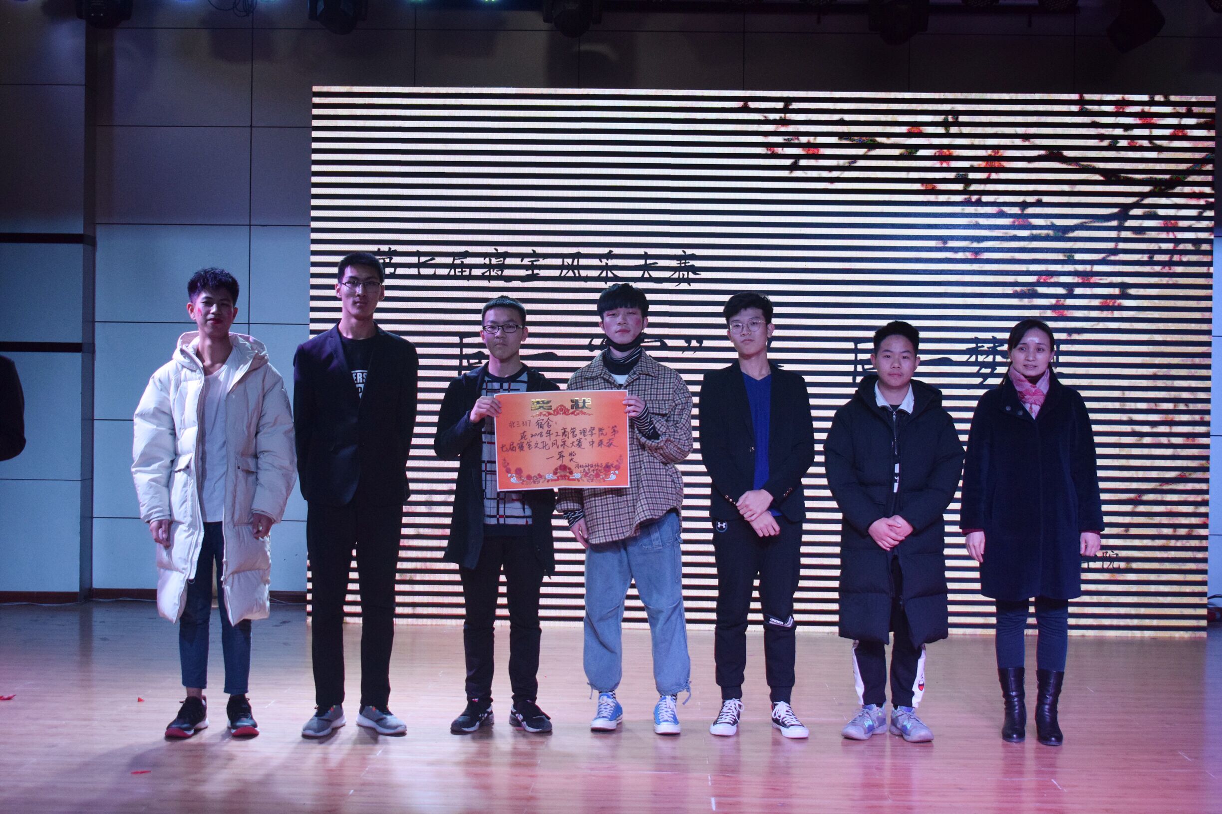 本届寝室文化风采大赛从初赛、复赛到最后决赛,历时一个多月。进入决赛的六个寝室,进行寝室文化风采展示、才艺比拼、寝室成员合力游戏三个环节的角逐,他们用独特的方式诉说了寝室的小故事,有的温婉优雅,有的热情奔放,有的幽默风趣,有羞涩清浅的素锦时年,亦有奋力追梦的风华少年;在寝室成员接力游戏中,大家团结合作、奋勇争先,比赛在一片欢声笑语中结束。最终北三317寝室获得一等奖,A座313、A座105寝室获得二等奖,北三305、A座218、A座214寝室获得三等奖。