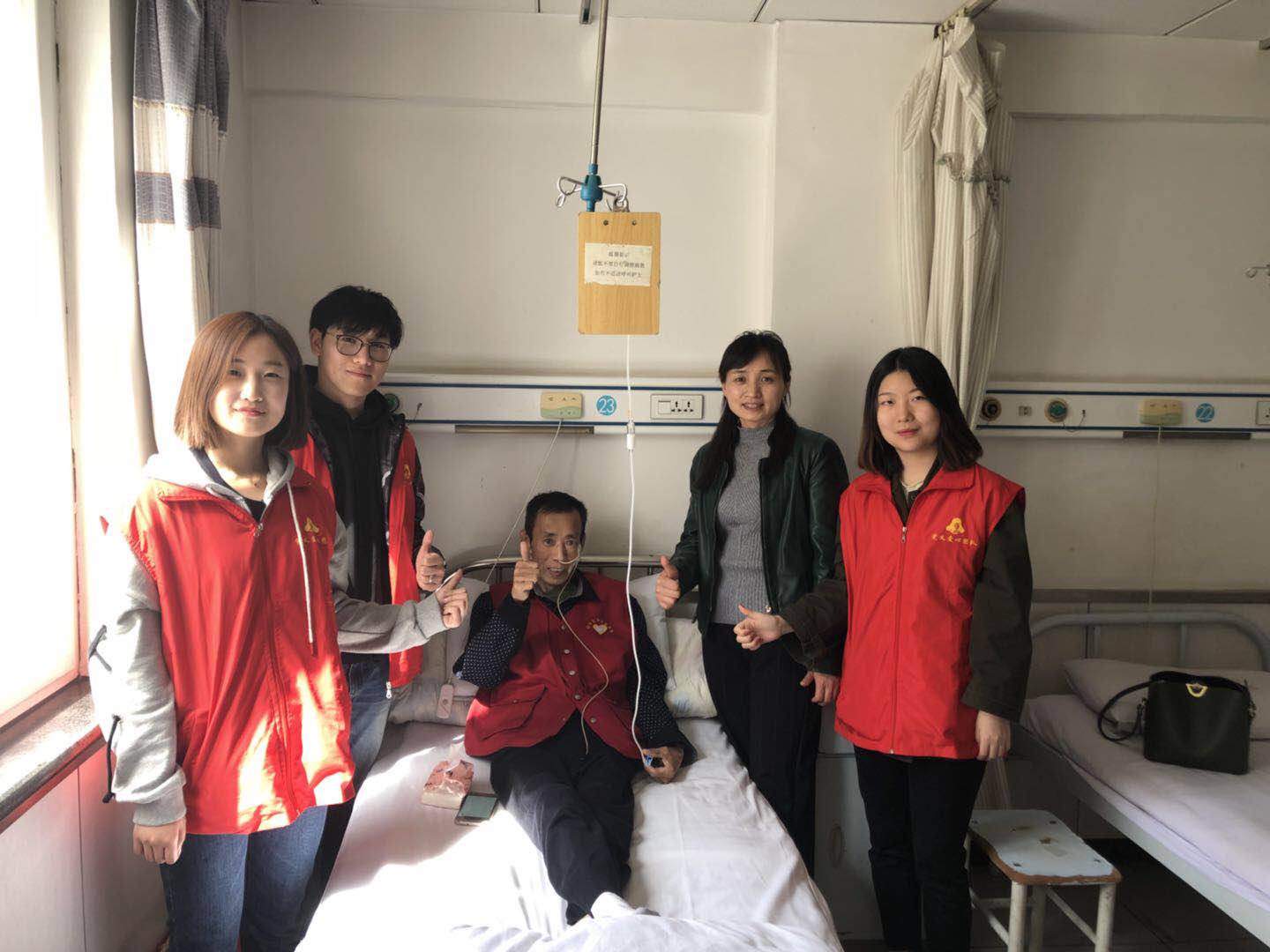 2018年4月13日,得知沈如波同志生病住院后,jinnianhui今年会师生志愿者立即组织起来,利用周末时间到医院陪护、照顾沈如波同志,带去了今年会师生的关怀和祝福。