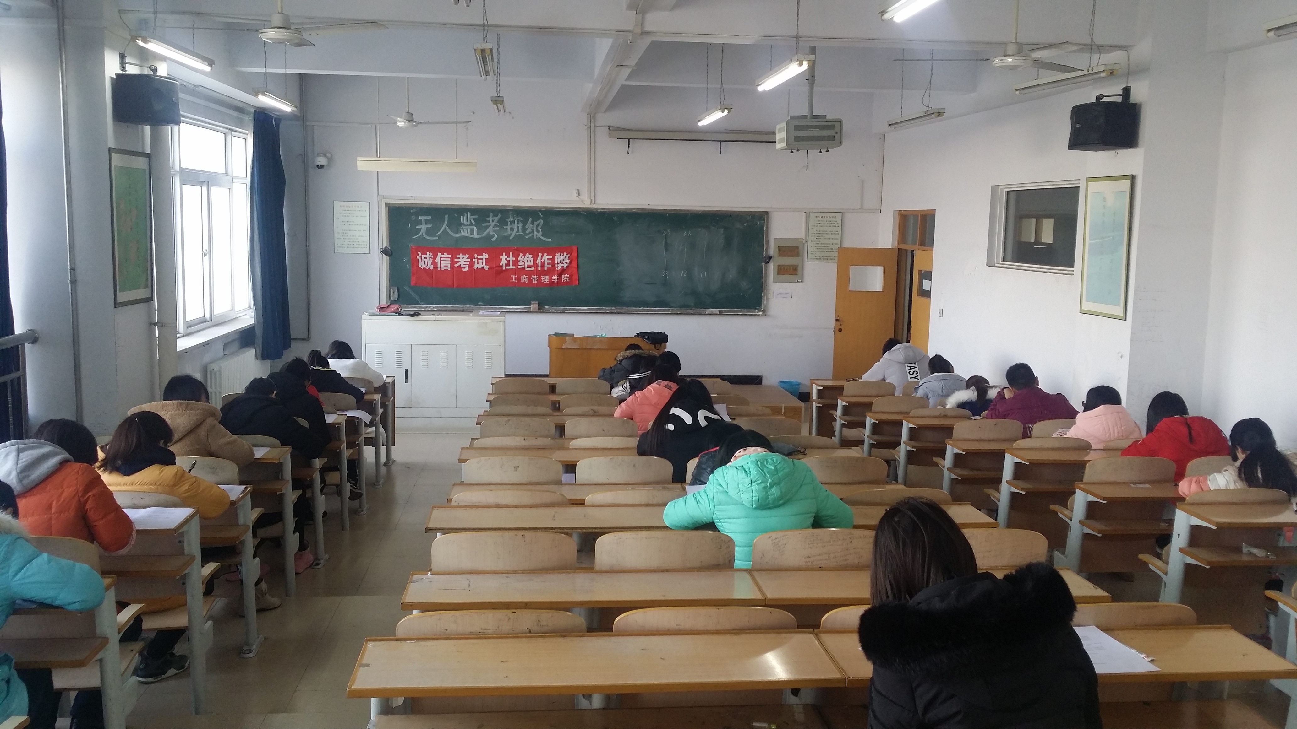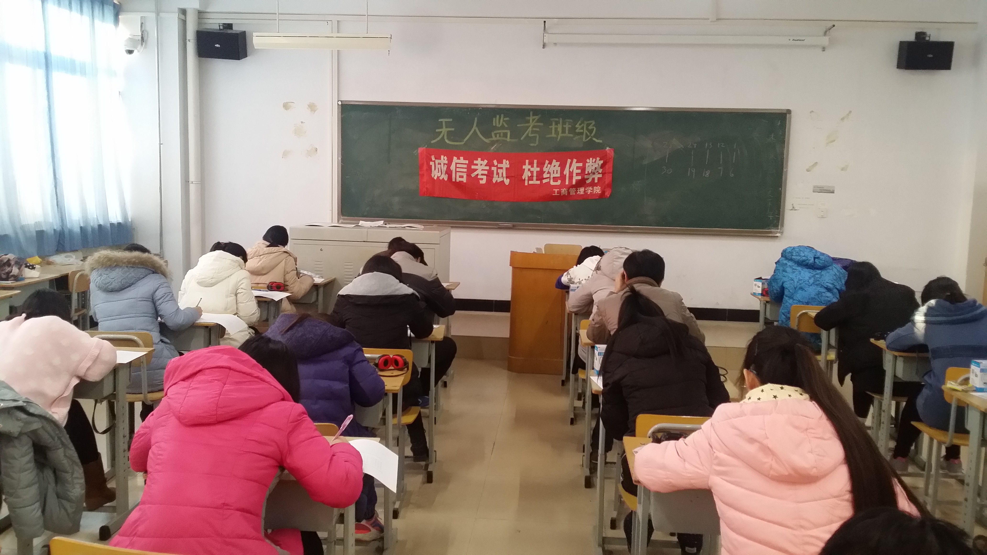 jinnianhui今年会学生为检验学风考风建设和文明养成活动教育效果,主动申请在期末考试中无人监考。申请班级召开专题班会并宣誓,承诺自觉遵守考试规定,诚信考试,不违纪,不作弊,并签订诚信考试承诺书,学院认真审核论证后报教务处审批备案。本次考试中共有15个班级申请并实施了无人监考,无任何违规违纪现象发生,表现良好,达到预期效果。