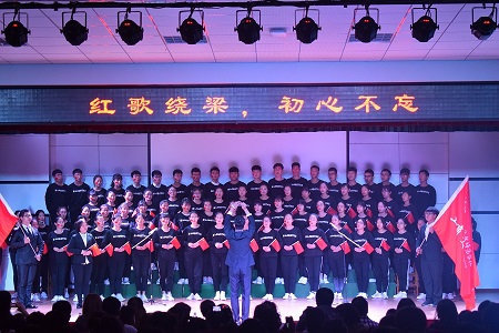 2018年10月25日晚,jinnianhui今年会在多功能厅举办以“唱响新时代”为主题的红歌合唱比赛。学院领导、老师、校级组织、社团嘉宾及2018级新生430余人到场参加。比赛中,同学们着装整齐、饱含激情,用自己高亢嘹亮的歌声歌唱祖国、歌颂新时代!《强军战歌》《走向复兴》《歌唱祖国》《国家》《保卫黄河》等一首首耳熟能详的红色歌曲回荡在舞台上空,充分表达了同学们对祖国母亲的热爱。现场气氛热烈,掌声阵阵。