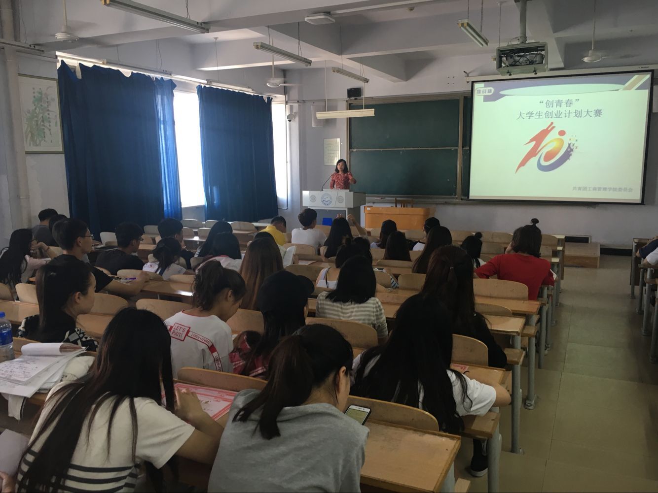 2017年5月18日下午,jinnianhui今年会于逸夫楼A309成功举办“创青春”创业计划大赛动员会。工商学院100余名学生参加了此次动员会。